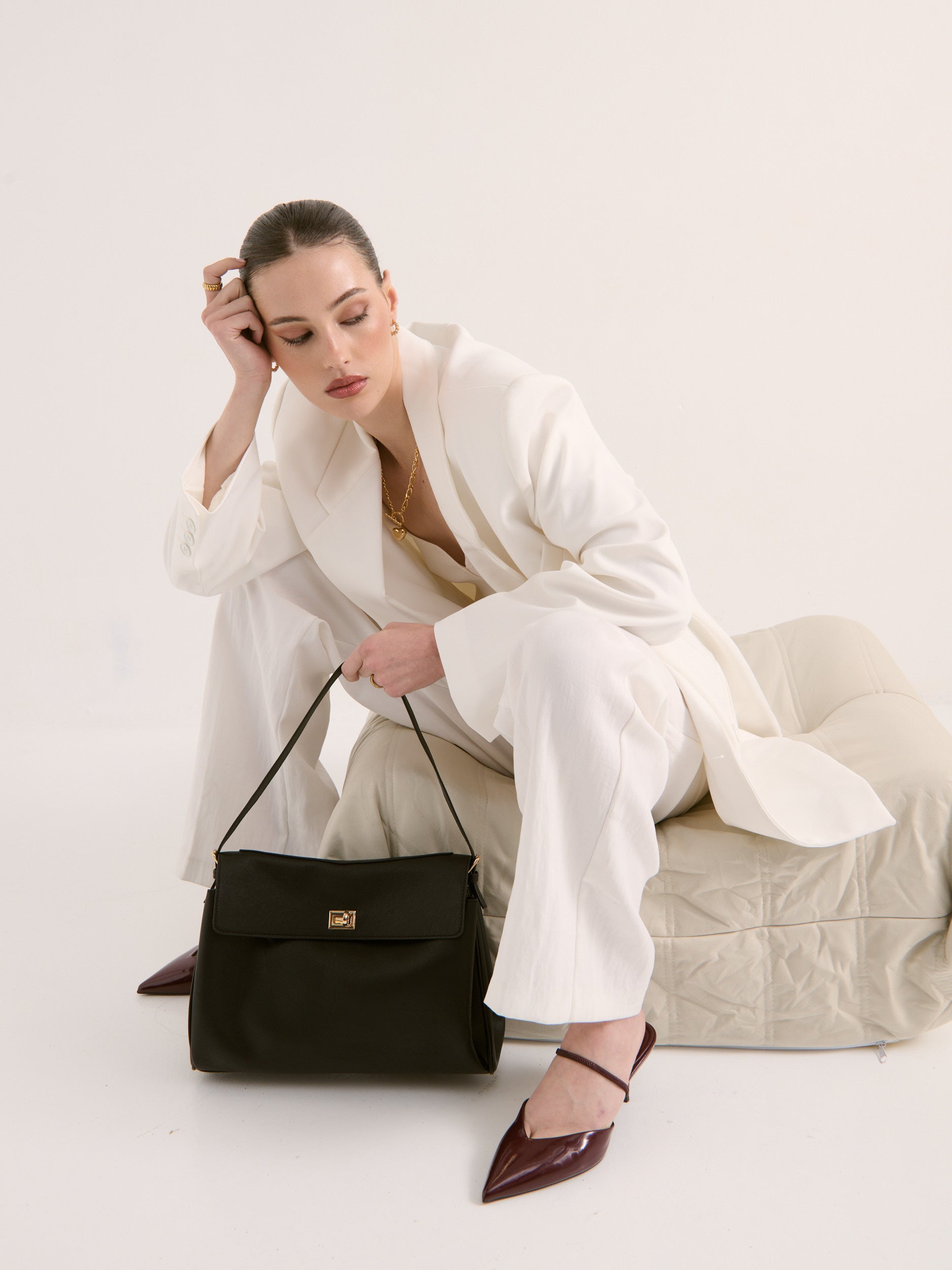 Charlotte Gold Clover Necklace - White
