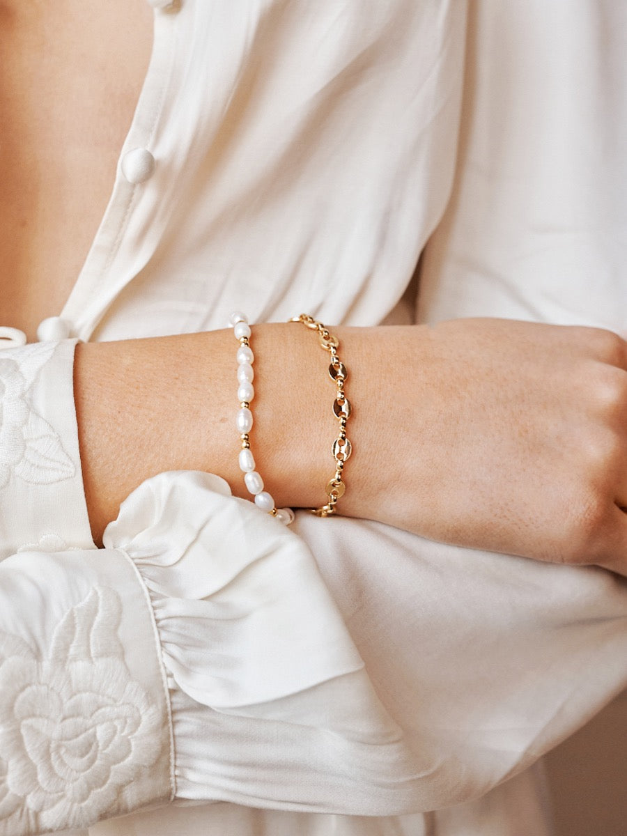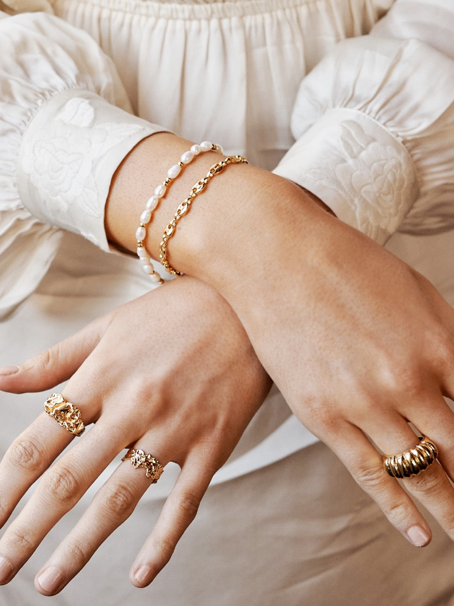 Add a refined touch to your look with Lustre & Sage’s bracelet collection. Our range features 18k gold plated and sterling silver plated designs, from delicate chains to bold bangles, all designed in Melbourne for effortless elegance. Style your bracelet solo or stack with other favourites, and complete your look with a matching necklace or earrings. For timeless sophistication, explore our Pearl Collection, or keep your collection organised with our jewellery storage.