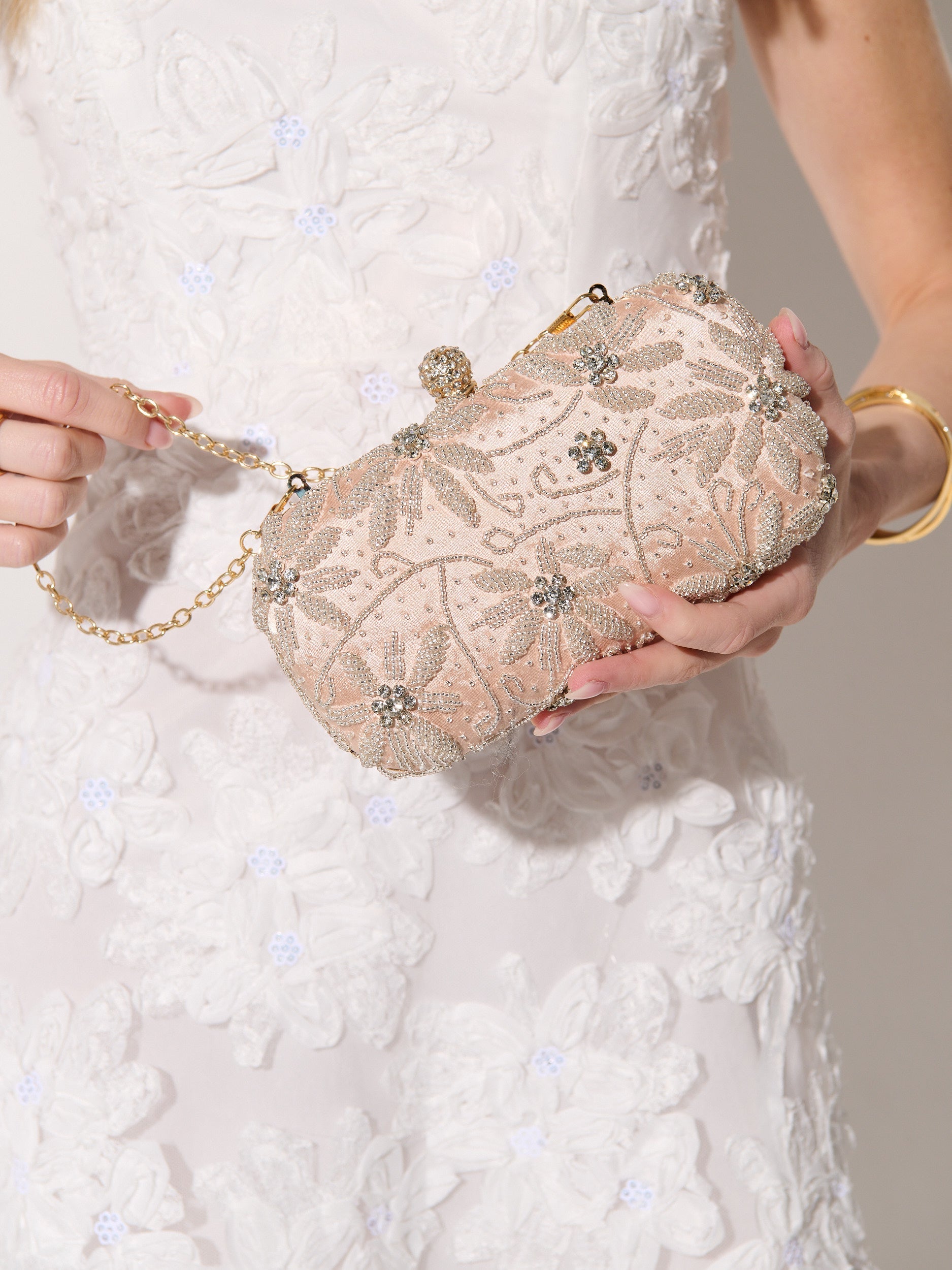 Add a touch of elegance to your evening ensemble with the Carter Beaded Clutch Bag. Crafted with intricate beaded embroidery on a satin outer shell, this statement piece offers a blend of luxury and timeless style. Complete with a detachable crossbody and hand strap, it provides versatile wear for weddings, formal events, or elegant evenings out.