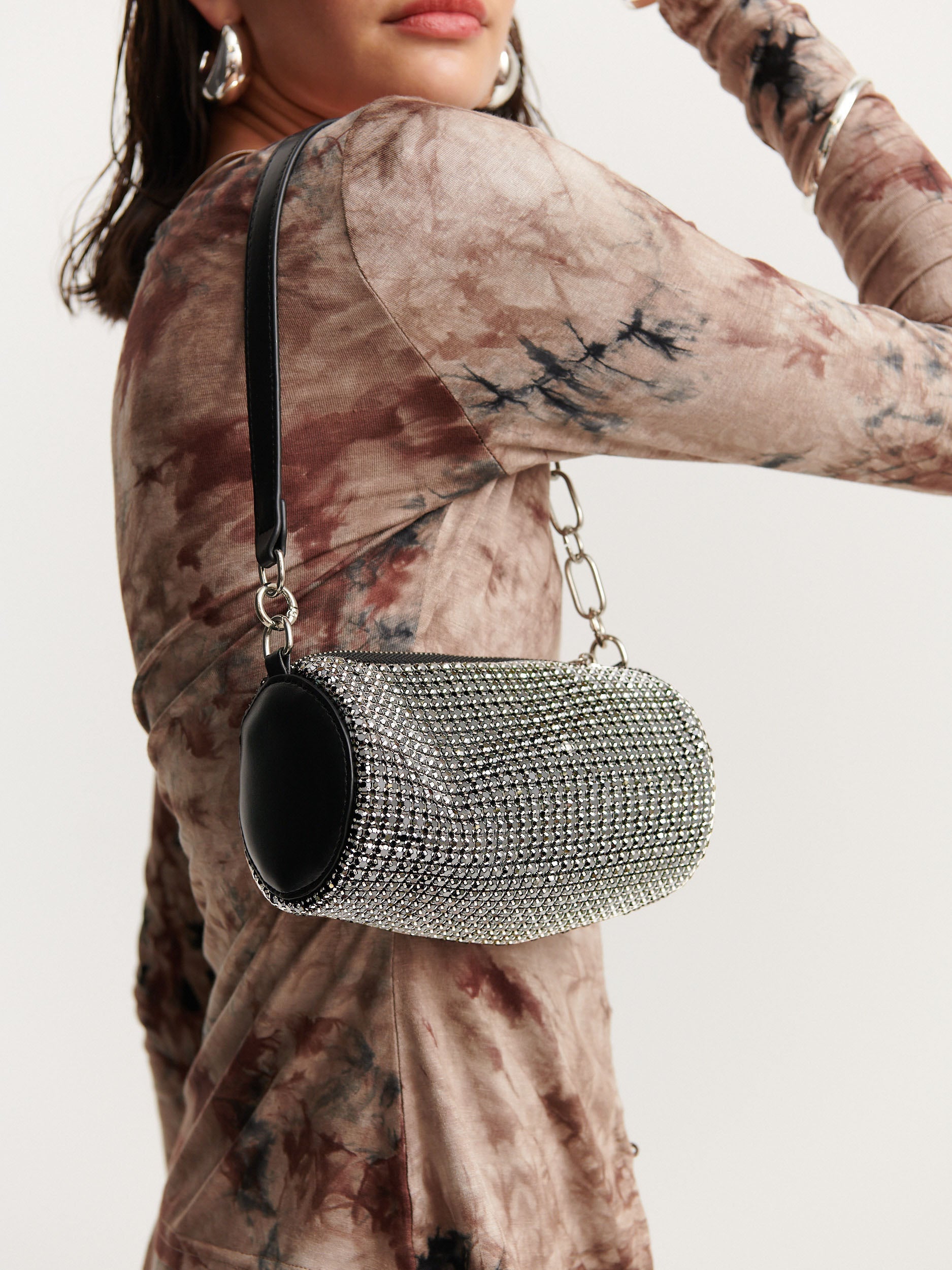 Khloe Rhinestone Party Bag - Silver