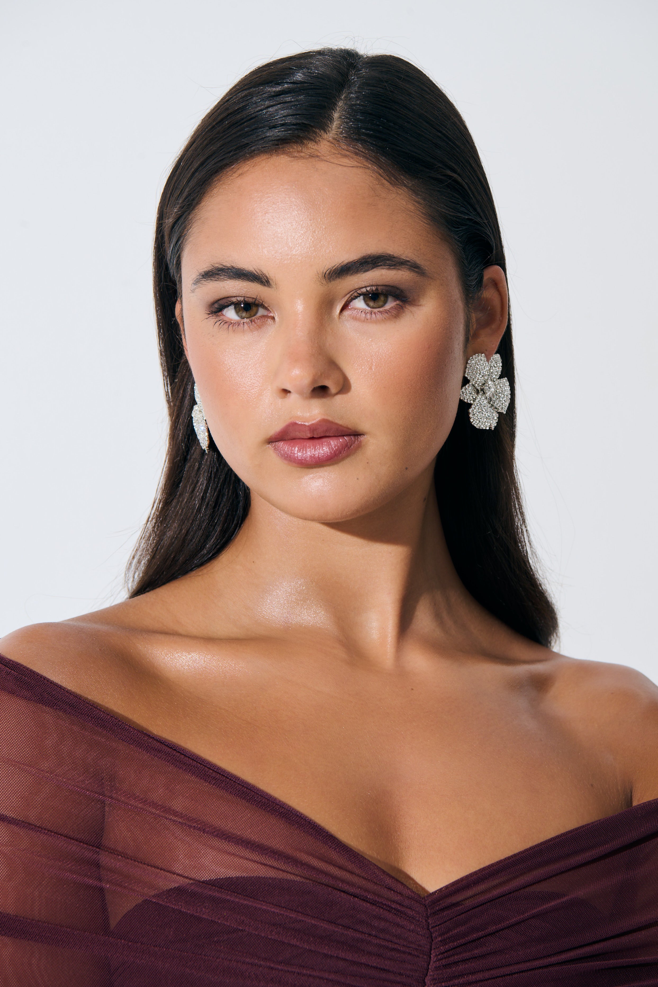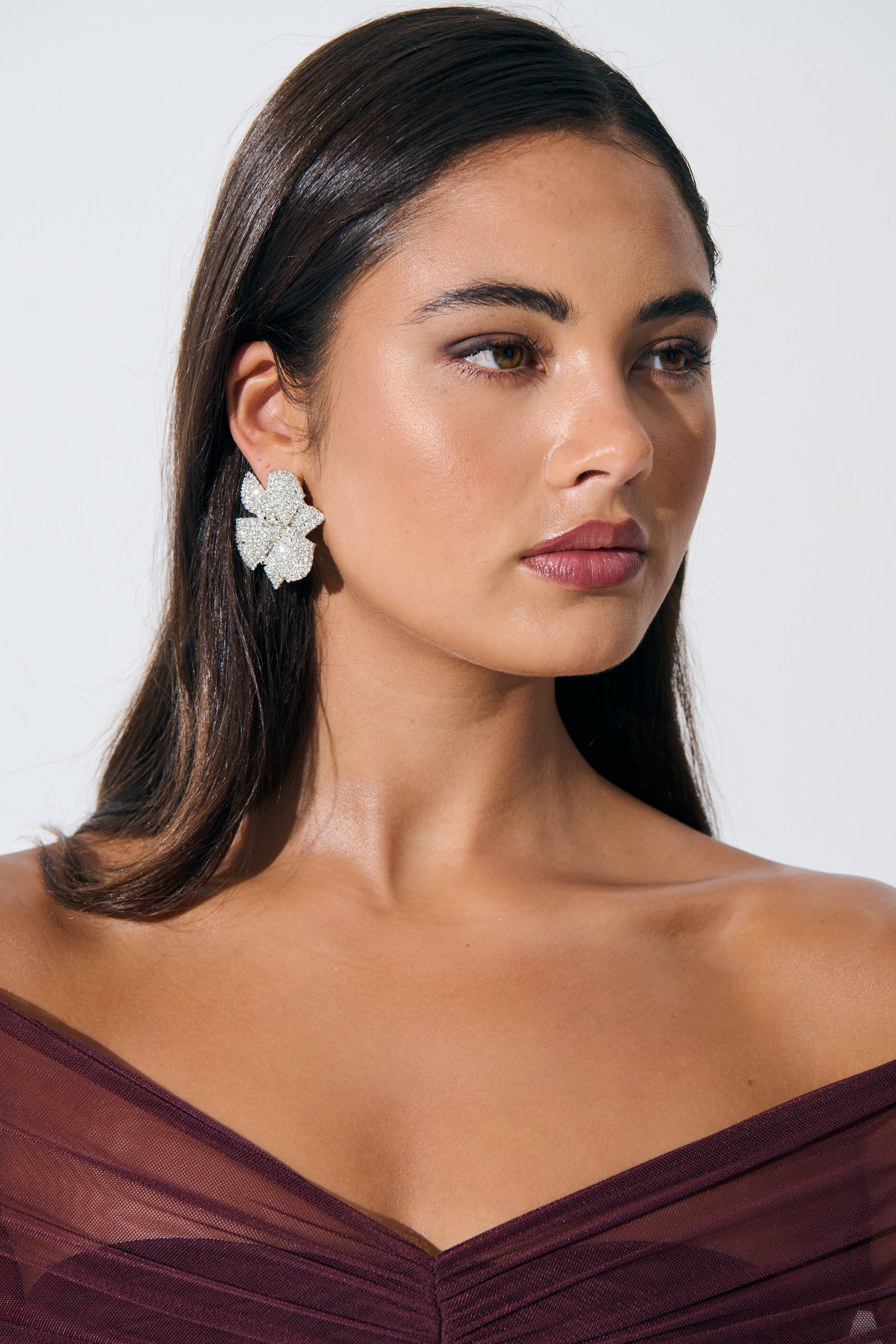 - Make a striking impression with the Priscilla Statement Floral Diamanté Earrings. Designed with a radiant floral silhouette, these earrings are crafted from brass with a sterling silver plating and finished with sparkling rhinestones for eye-catching brilliance.