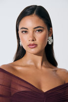 Priscilla Statement Floral Diamante Earrings - Silver