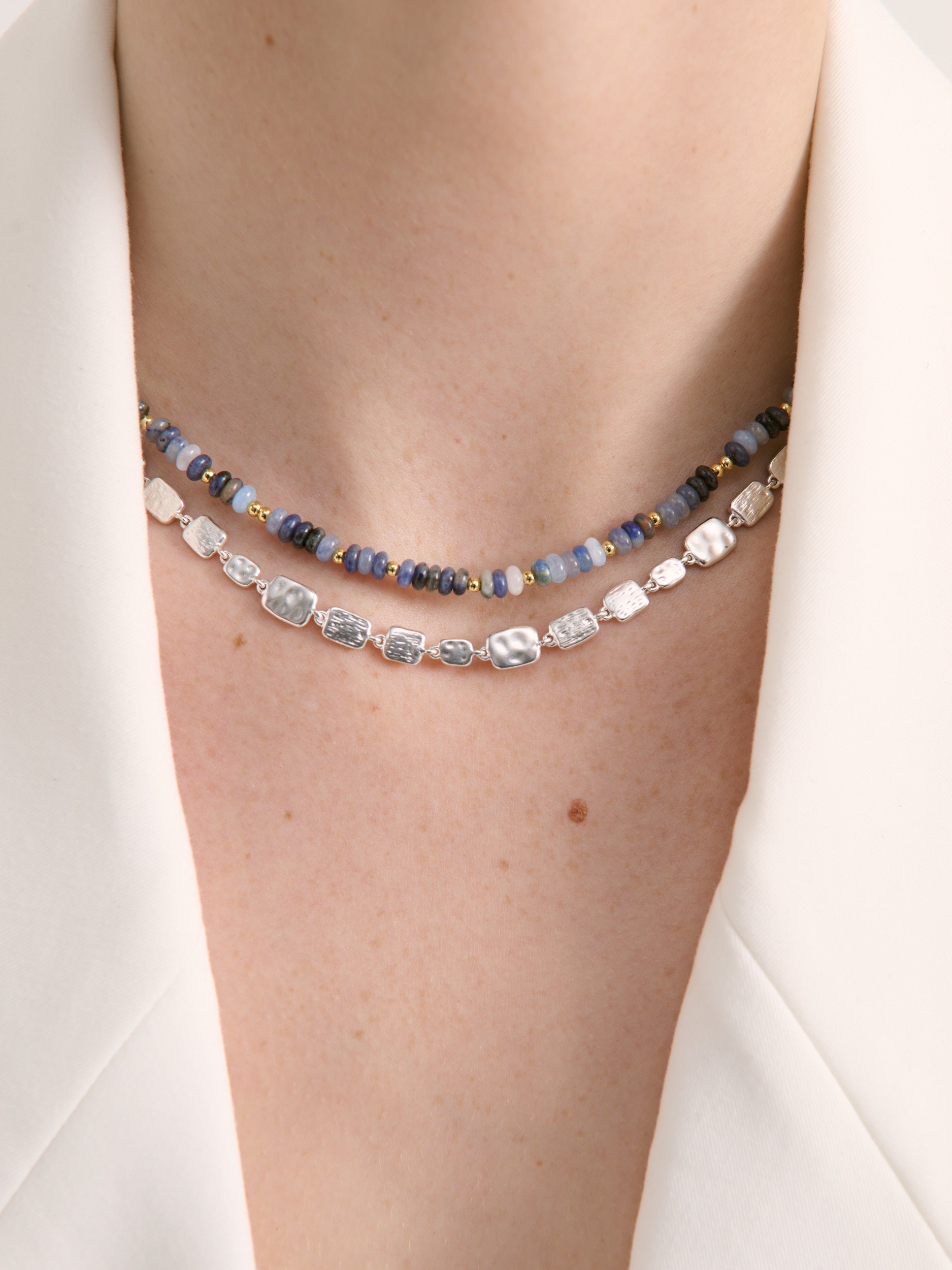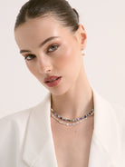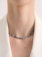 Introducing the Tropicana Beaded Necklace, A delicate beaded necklace featuring rich blue stones accented with tiny touches of gold for a soft, elegant glow.
