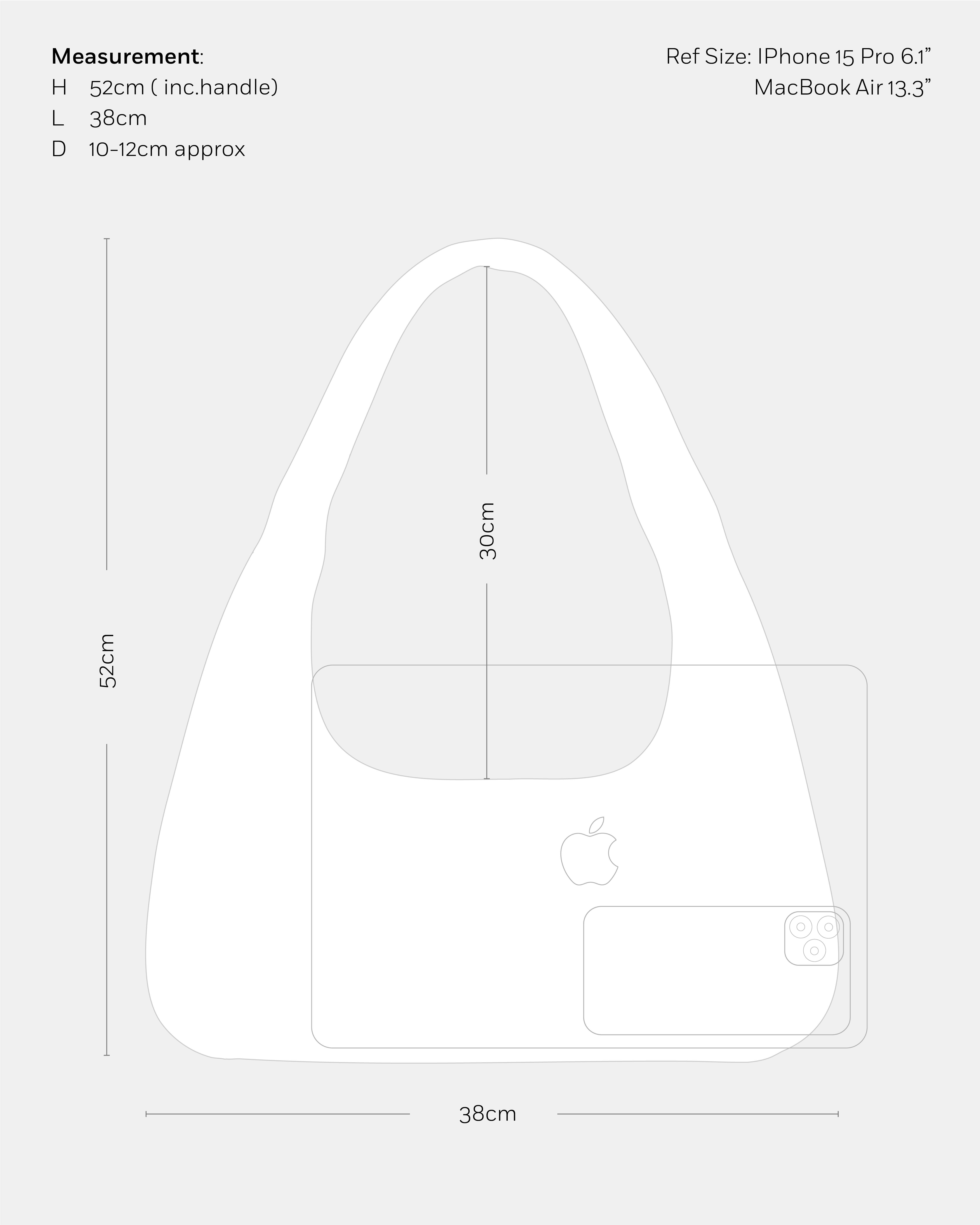 Dimensions: Length: 38cm | Height: 22cm | Depth: 10-12cm approx | Shoulder Drop: 30 cm (middle of strap to zipper)